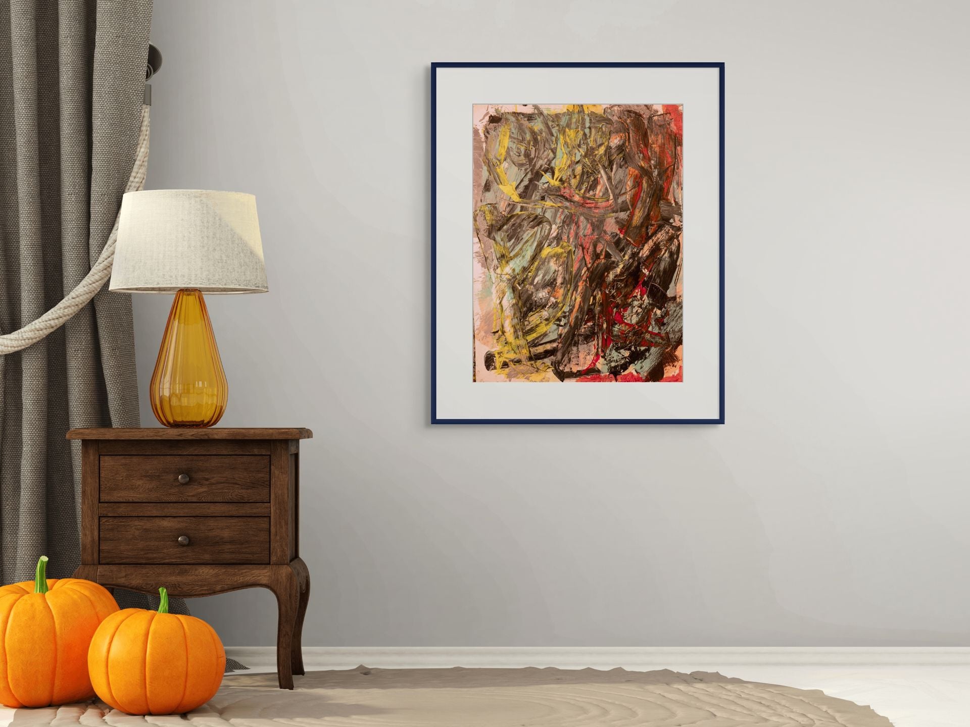 Immerse yourself in the vibrant world of "Ain't Over You - Original 18x24 Dark-Toned Abstract Painting by Dave Lakatos". This captivating piece invites you to explore its layered complexity and bold color palette. Each brushstroke and strategically placed linework come together to form a dynamic composition, perfect for those who appreciate modern, abstract art.
