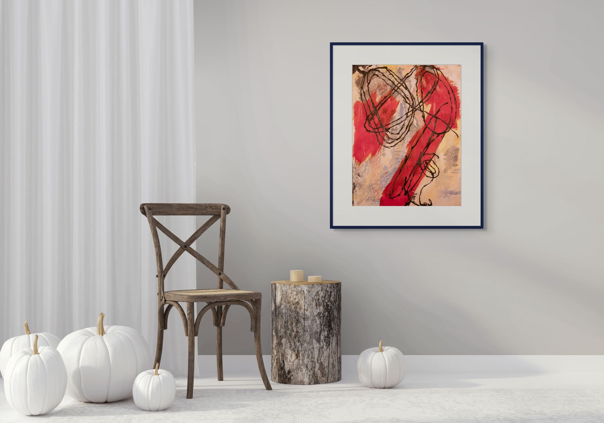 This piece began as an abstract interpretation of a head with unusual eyes—but as the painting evolved, it took on a life of its own. What emerged was far richer and more evocative than I originally imagined. The bold red lines provide a striking focal point, giving the composition its emotional impact, while the layered linework adds both depth and intrigue.