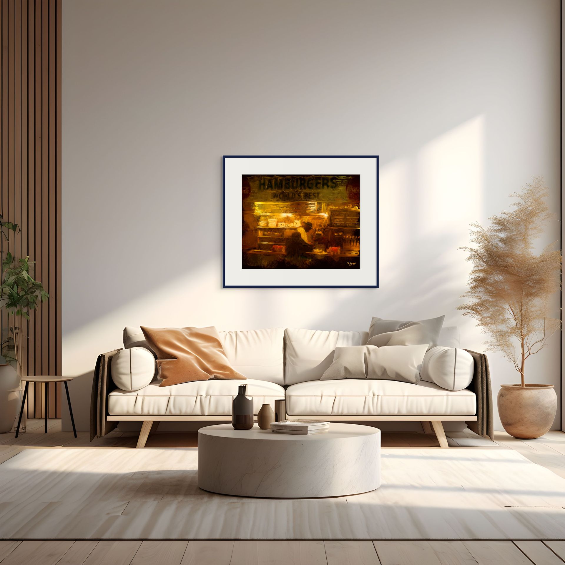 This artwork is perfect for art collectors, lovers of Americana, or anyone looking to add a touch of nostalgia to their home decor. Each viewing offers a new discovery, inviting you to relive those moments of comfort and warmth that only a late-night diner can provide.